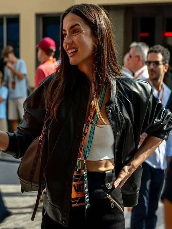 Ana de Armas F1 Grand Prix Black Leather Jacket