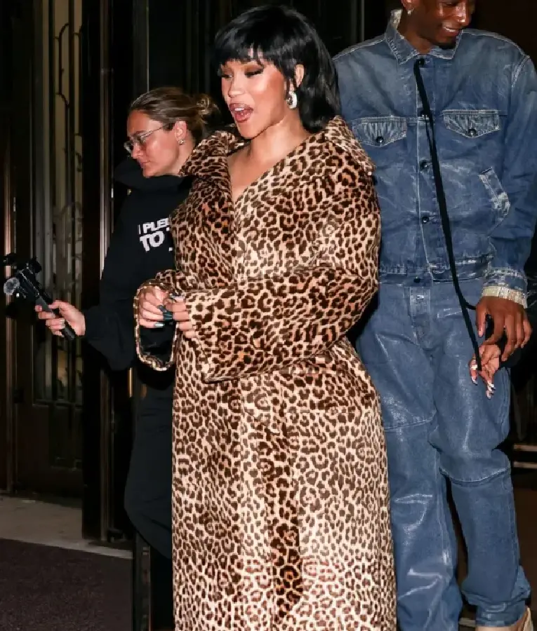 Cardi B EE72 Magazine Launch Party Leopard Print Coat
