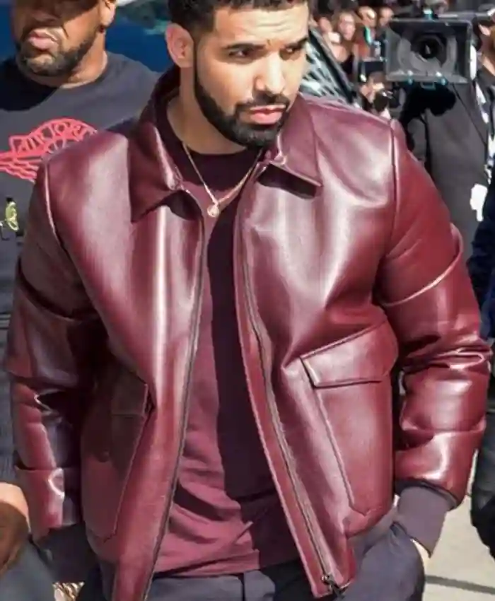 Be the first to review “Drake Maroon Bomber Leather Jacket”