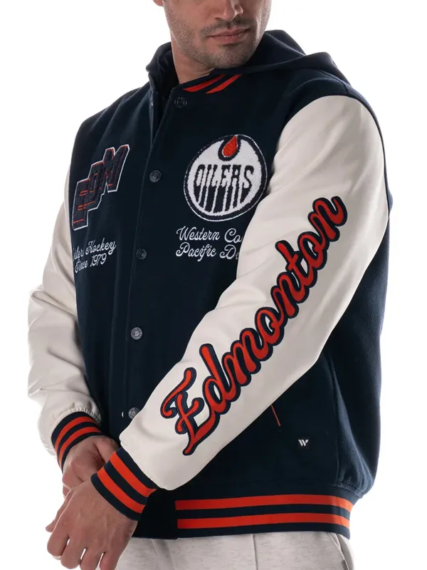 Edmonton Oilers Blue Varsity Coach’s Jacket