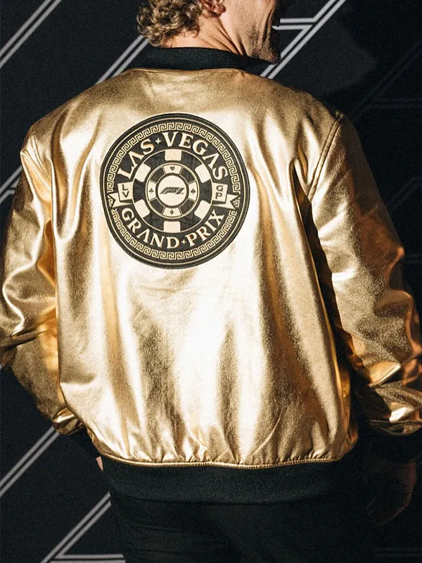 Formula 1 Las Vegas Grand Prix Gold Bomber Leather Jacket