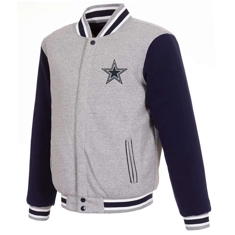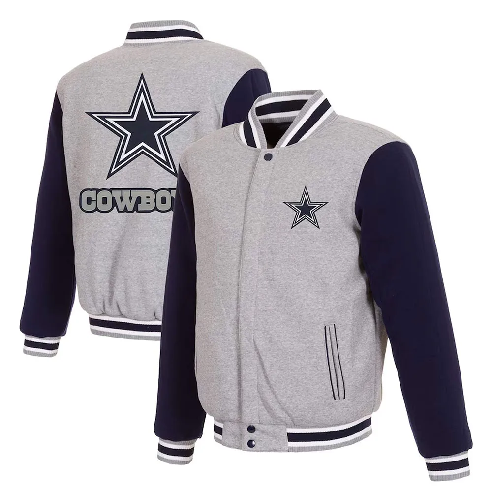 Gray and Navy Dallas Cowboys Varsity Wool Jacket