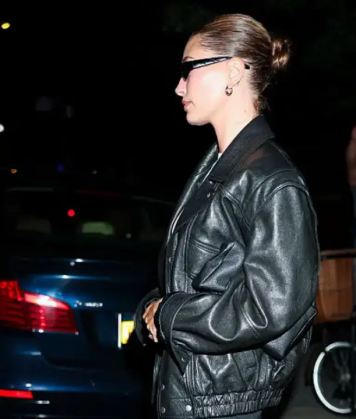 Hailey Bieber NYC 2025 Black Leather Jacket
