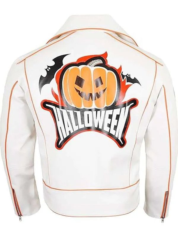 Halloween Pumpkin White Biker Leather Jacket
