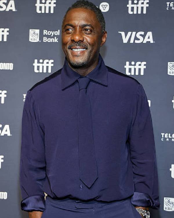 Idris Elba 2025 Toronto International Film Festival Blue Satin Shirt