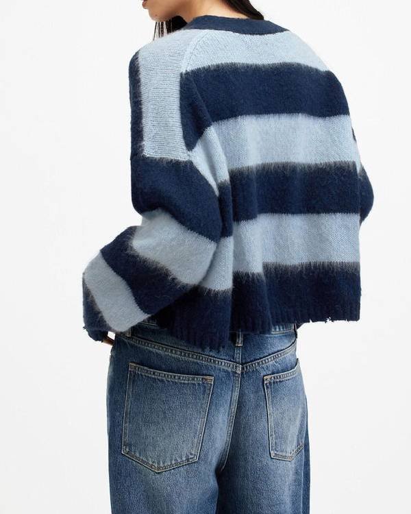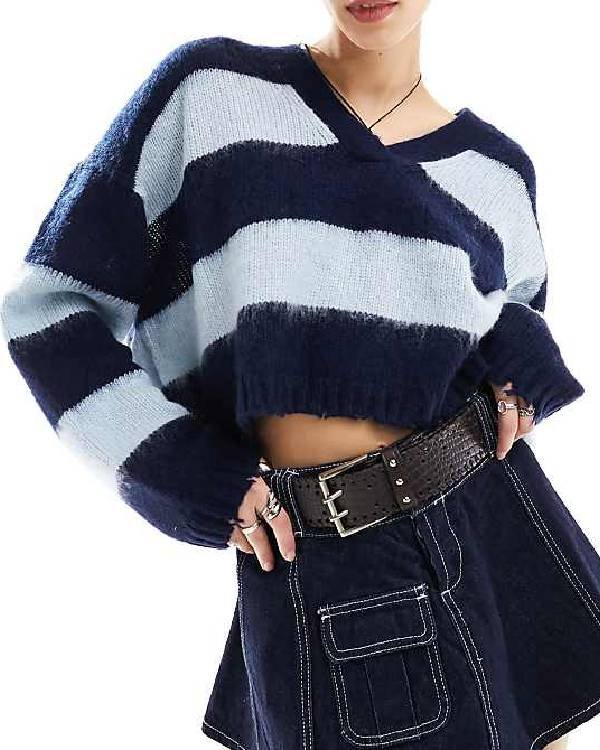 Invasion Olivia-Mai Barrett Blue V-Neck Cropped Sweater