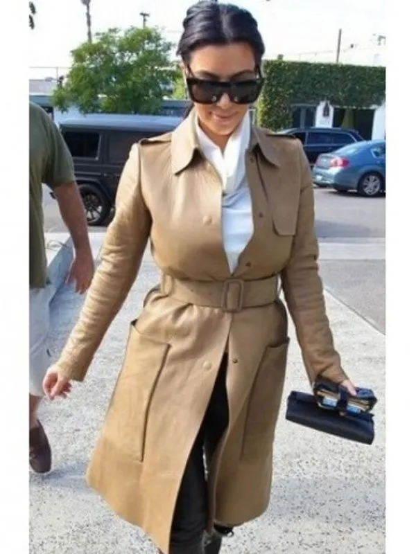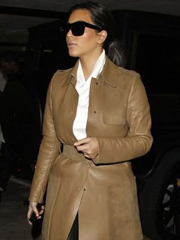 Kim Kardashian Brown Leather Trench Coat