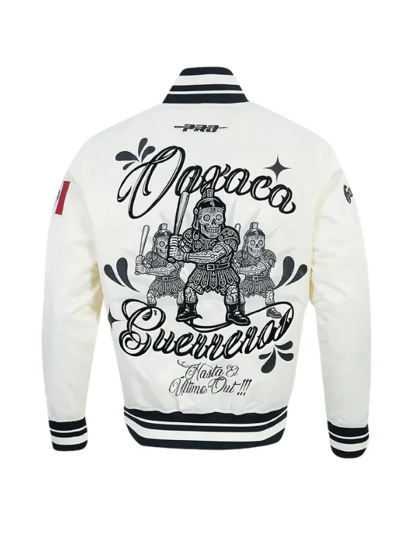 LMB Oaxaca Warriors Cream Satin Varsity Jacket