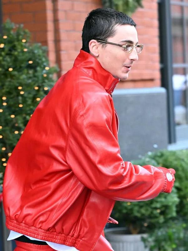 Marty Supreme Premiere Timothee Chalamet Red Jacket