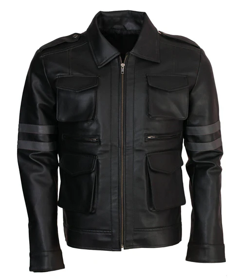 Men’s Multi Pockets Evil Resident Cosplay Genuine Leather Jacket