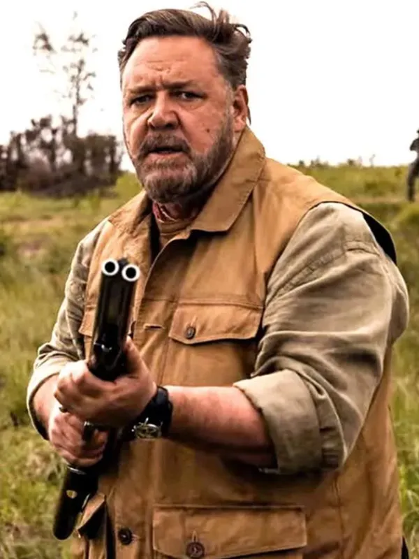 Movie Kraven The Hunter 2024 Russell Crowe Brown Vest
