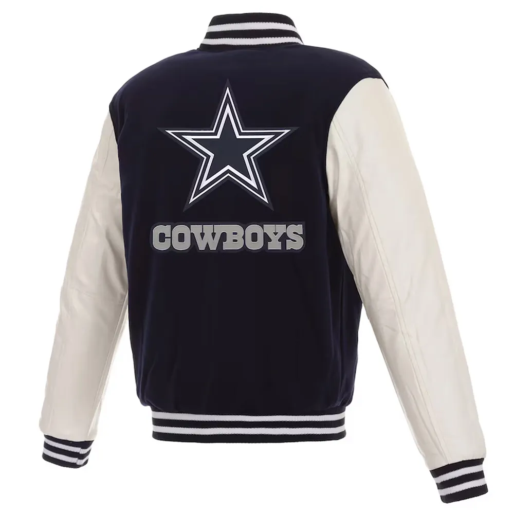 Navy Blue and White Dallas Cowboys Varsity Jacket