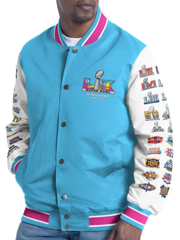 NFL Super Bowl All Event Logo Blue Varsity Jacket