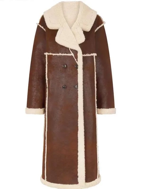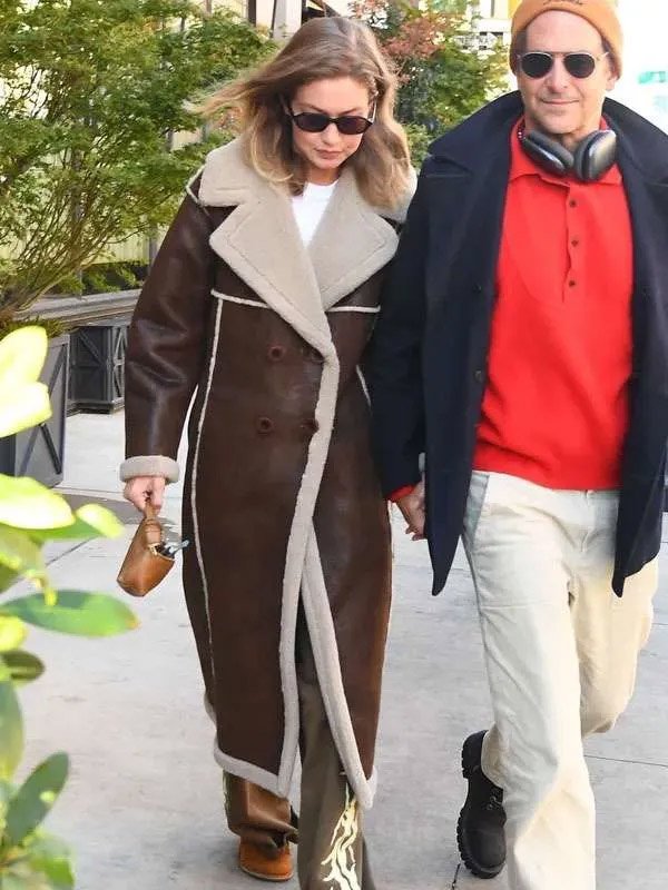 NYC 2025 Gigi Hadid Shearling Brown Leather Coat
