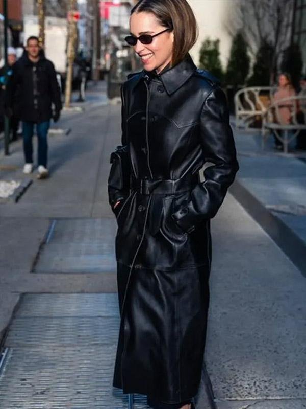 NYC 2026 Emilia Clarke Leather Trench Coat