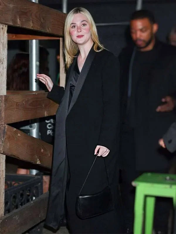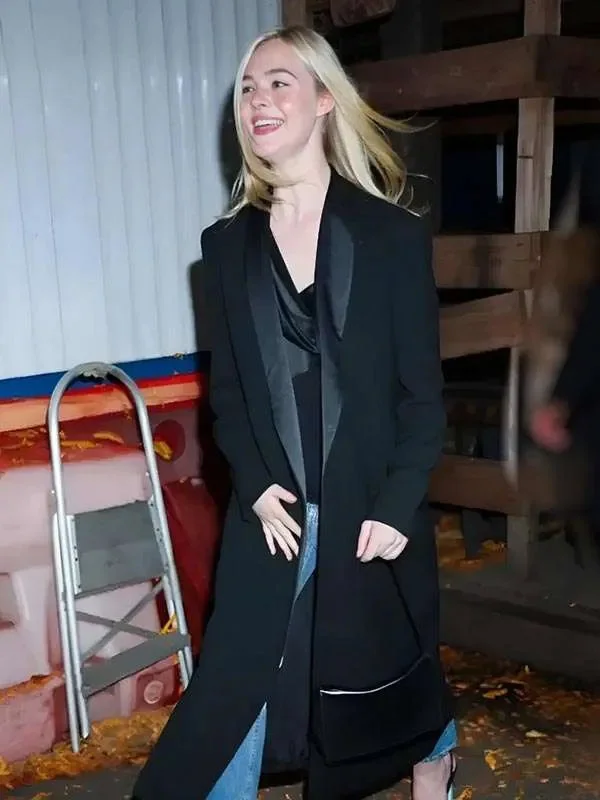 NYC Elle Fanning Black Wool Coat