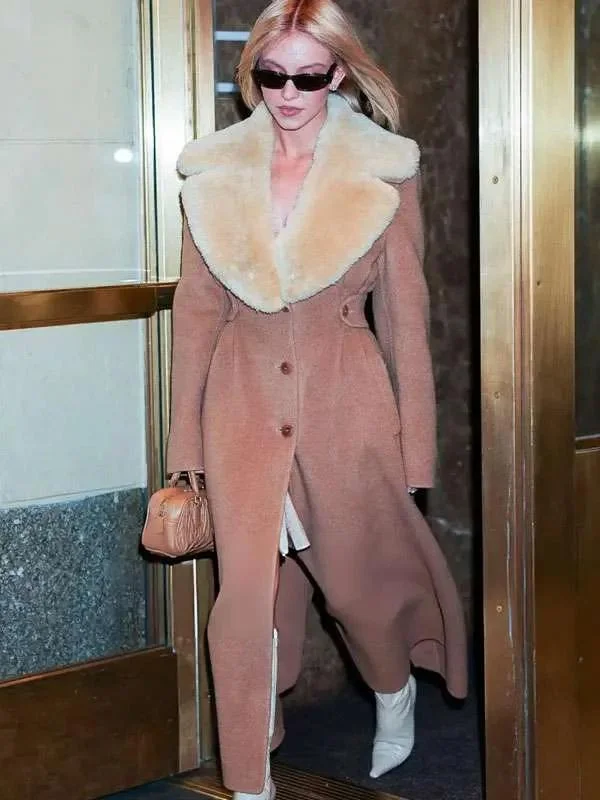NYC Sydney Sweeney Brown Shearling Coat