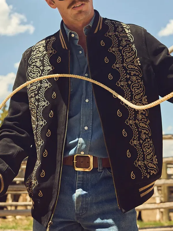 Rodeo Cowboys Bandana Bomber Suede Jacket