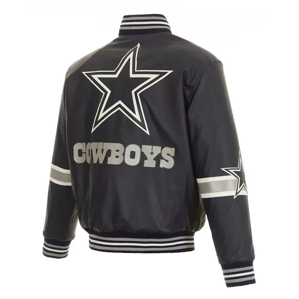 Striped Varsity Dallas Cowboys BlackLeather Jacket