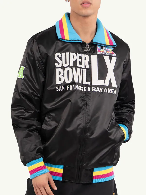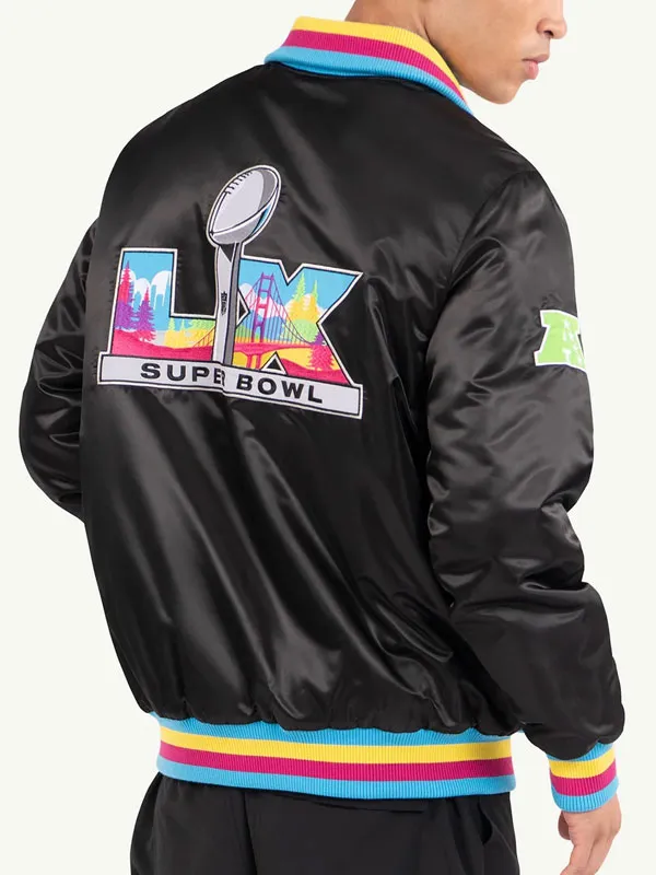 Super Bowl LX Black Satin Varsity Jacket