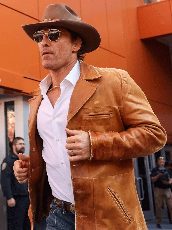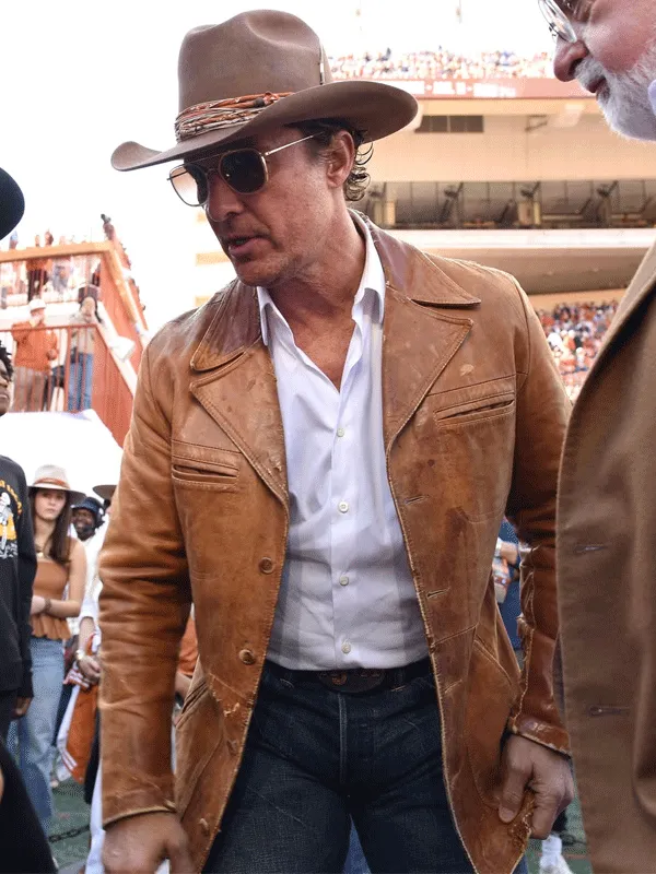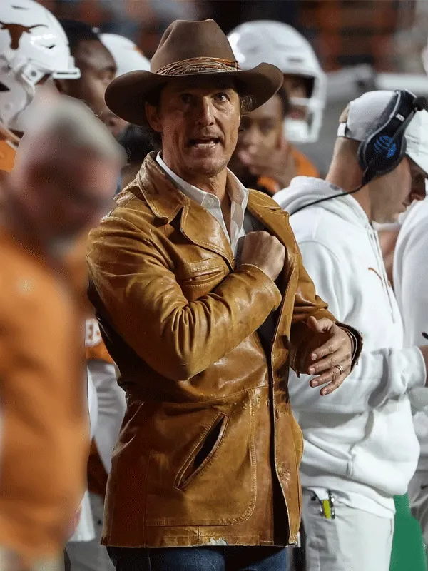 Texas Longhorns Matthew McConaughey Brown Leather Jacket