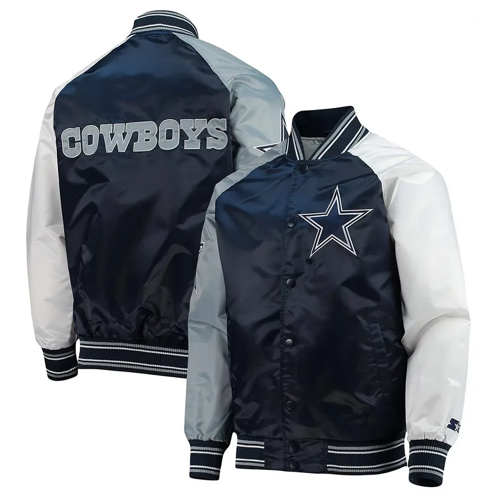 The Reliever Dallas Cowboys Navy/White Varsity Satin Jacket